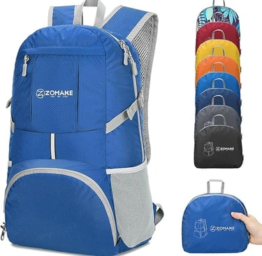 The ZOMAKE foldable backpack offers a generous 35L capacity while remaining lightweight at just 0.3kg. Compact and versatile, it folds to the size of a burger for convenient storage in luggage or handbags, expanding only when needed. Designed for organization, it features a main compartment for larger items like clothes, two front zippered pockets for smaller essentials, and side pockets for water bottles or umbrellas. Made from durable double-layer nylon with a reinforced bottom and heavy-duty SBS zippers, it withstands the rigors of outdoor activities. The waterproof coating protects contents from light rain, making it ideal for travel, hiking, camping, and picnics. Backed by a 60-day return or refund guarantee, it’s a reliable and practical choice for adventurers.
