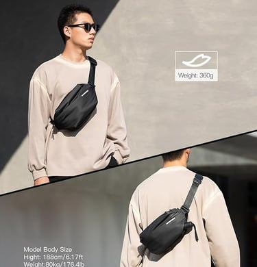 This sleek and versatile crossbody bag for men/women offers a compact yet spacious design, measuring 34 x 15 x 8 cm with a 4L capacity. The main compartment features a zippered front section with double-layered pockets and a rear section perfect for storing electronics like an iPad Mini or Kindle, with elastic bands to keep cables organized. Its layered structure includes 19 functional zones, with concealed zippered pockets for valuables, card slots for quick access, and a dry-and-wet separation interlayer for items like umbrellas. Lightweight at just 360g, the bag is crafted with water-resistant 900D polyester and durable YKK zippers for long-lasting use. With an adjustable shoulder strap and stylish black design, it’s ideal for shopping, hiking, concerts, and more, making it a fashionable and practical choice for everyday activities or as a gift.